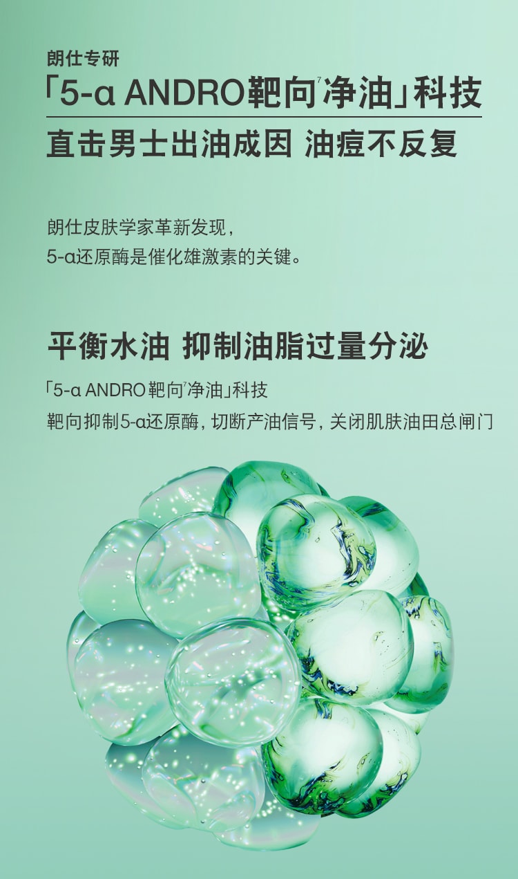 专研「5-α ANDRO靶向净油」科技,抑制油脂过量分泌。