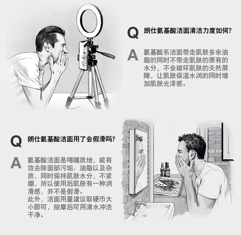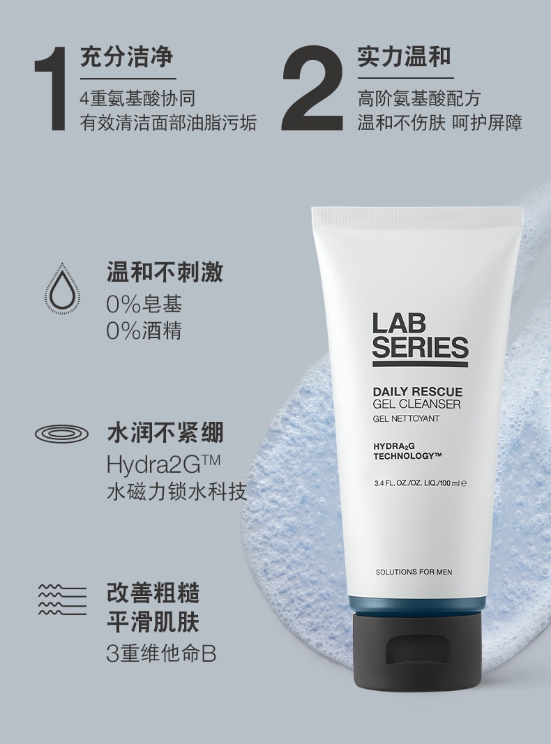 首页 / CLEAN 朗仕保湿焕能洁面啫喱DAILY RESCUE GEL CLEANSR 氨基酸洁面 温和清洁 提升肌肤光泽 加载中 保湿焕能系列 温和清洁肌肤,清除面部污垢、杂质与多余油脂 采用Hydra 2G水磁石锁水科技,保湿锁水,呵护肌肤屏障,洗后水润不紧绷 即刻令肌肤更加平滑有光泽 1周肌肤光泽度+10%****来自朗仕合作实验室数据,经23名45-69岁男性,每日使用2次,连续使用一周后的测试结果,实际效果因人而异。 实验室结果 98%98%男士认同,肌肤水油平衡****94位男性每日使用两次产品,连续使用1周后的测试结果99%99%男士认同,肌肤更平滑细腻****94位男性每日使用两次产品,连续使用1周后的测试结果97%97%男士认同,肌肤水润不紧绷****94位男性每日使用两次产品,连续使用1周后的测试结果 成分配方Hydra2G 水磁石锁水科技,磁石般牢牢锁住水分,减少清洁过程中肌肤水分流失。重氨基酸,温和清洁,保湿不紧绷。3重维他命B,调理滋养肌肤,修护强韧肌肤屏障。温和配方,不添加皂基、SLS、SLES。 朗仕重视环境保护朗仕保湿焕能洁面啫喱的包装由 25% 以上环保再生材料制成。