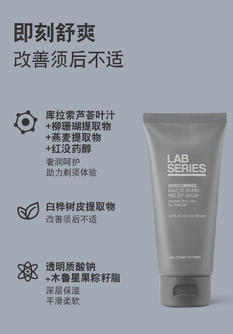 首页 / All Product 朗仕舒爽须后乳GROOMING 清爽的保湿乳液,能快速舒缓剃须引起的肌肤灼热、发红及其他不适。 加载中 理容 即刻缓解剃须后的灼热,刺激和肌肤泛红 保湿舒缓剃须部位 帮助重建肌肤保湿屏障,减少水分流失 长效保湿,缓解肌肤紧绷和干燥问题 成分配方燕麦提取物,帮助舒缓肌肤刺激不适。库拉索芦荟叶汁、柳珊瑚提取物、红没药醇和咖啡因,帮助舒缓肌肤,减少刺激敏感。透明质酸钠协同多重保湿因子,补水保湿,滋润肌肤。白桦树皮提取物,强韧并修护因剃须导致的肌肤屏障受损。 朗仕重视环境保护朗仕须后舒缓乳的包装由 25% 以上环保再生材料制成。